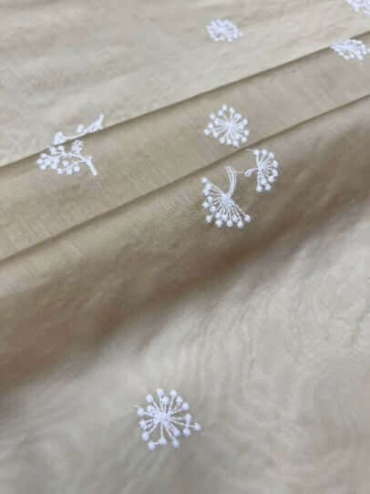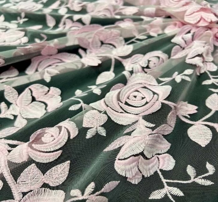 Fine net or tulle bases combined with controlled embroidery density create dimensional depth without weight.