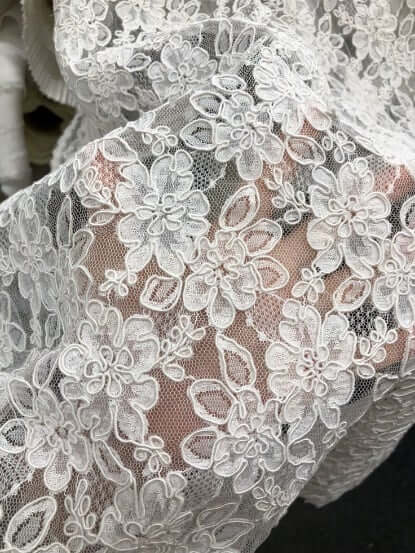 Tulle lace enables controlled transparency and refined layering. It remains essential across bridal, eveningwear, and occasionwear categories.