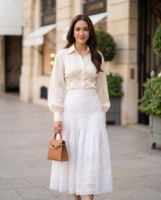 White lace is ideal for merit-making, temple visits, religious ceremonies, engagementwear, bridal looks, and other garments that require purity, modesty, and timeless elegance.