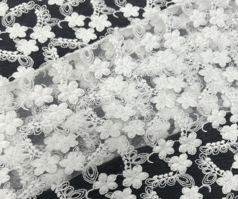 Tulle Lace ให้ภาพลักษณ์เบา โปร่ง ละเอียด และมี movement เหมาะกับงานที่ต้องการ layering หรือรายละเอียดบางเบา ไฟล์หมวดสินค้าระบุว่าทูลเลซเป็นผ้าโปร่งน้ำหนักเบา ลวดลายโปร่ง และทิ้งตัวอย่างงดงาม