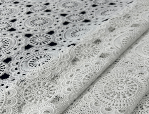 Guipure Lace มีลักษณะเด่นที่ลวดลายยกสูงและพื้นผิวเด่นชัด เป็นลูกไม้ที่มีโครงสร้างมากกว่ากลุ่ม Chantilly หรือ Tulle โดยหมวดสินค้าระบุว่า Guipure เป็นผ้าที่มี raised pattern และภาพลักษณ์แบบ vintage elegance