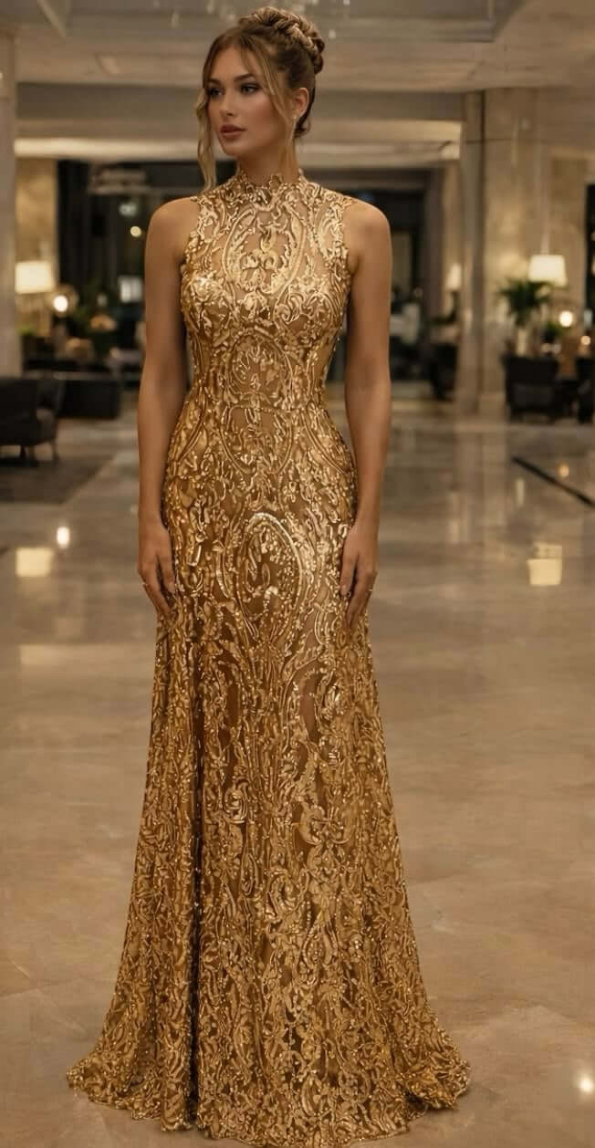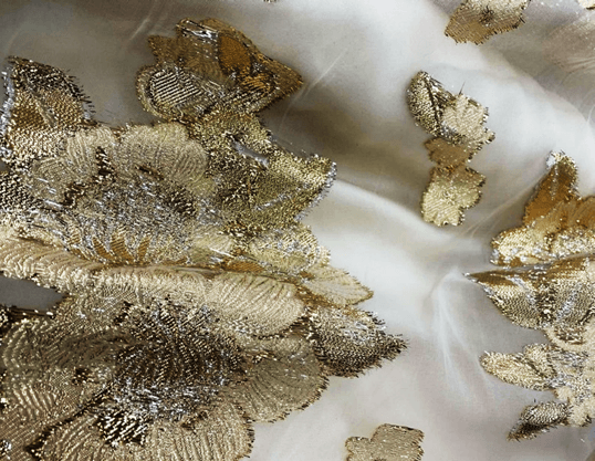 สีทองและสีแชมเปญสื่อถึงความมั่งคั่ง ความรุ่งเรือง ความมีเกียรติ และความสง่างามในเชิงพิธีการ ในบริบทไทย สีเหล่านี้เหมาะมากกับงานแต่ง งานหมั้น งานฉลอง และ occasion wear ระดับพรีเมียม โดยเฉพาะเมื่อนำมาใช้กับลูกไม้ จะยิ่งช่วยให้เสื้อผ้าดูหรูหราและมีมูลค่าสูงขึ้น
