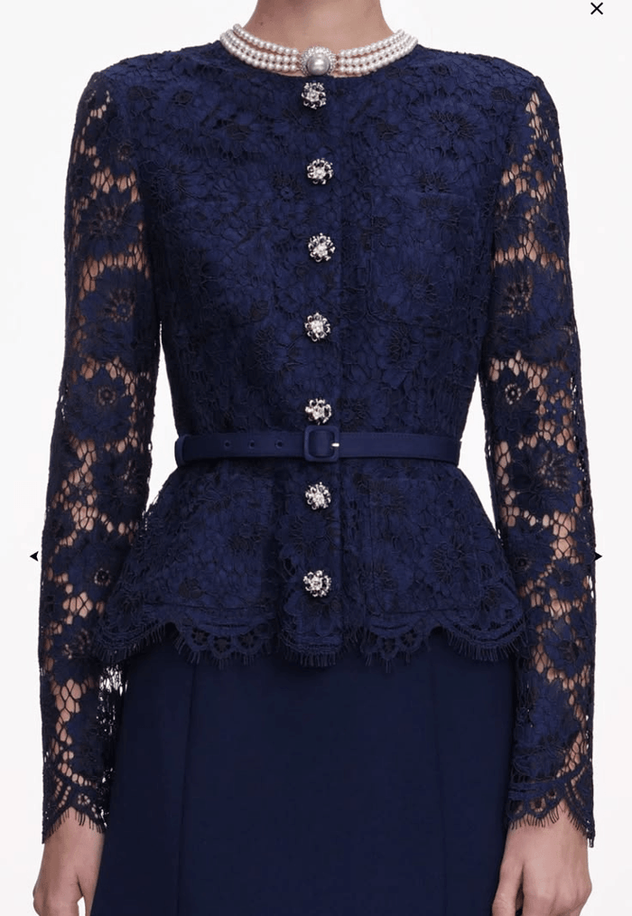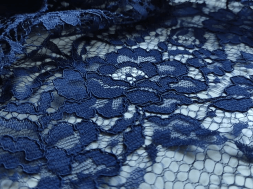 แม้ในไฟล์หมวดสินค้าจะยังไม่ได้ลงคำอธิบายเต็มสำหรับ Cord Lace แต่ในเชิง textile application ลูกไม้ประเภท corded หรือ lace ที่มีเส้นคอร์ดช่วยขับลาย จะเหมาะมากกับเฉด navy เพราะช่วยให้ motif เด่นขึ้นบนพื้นสีเข้ม