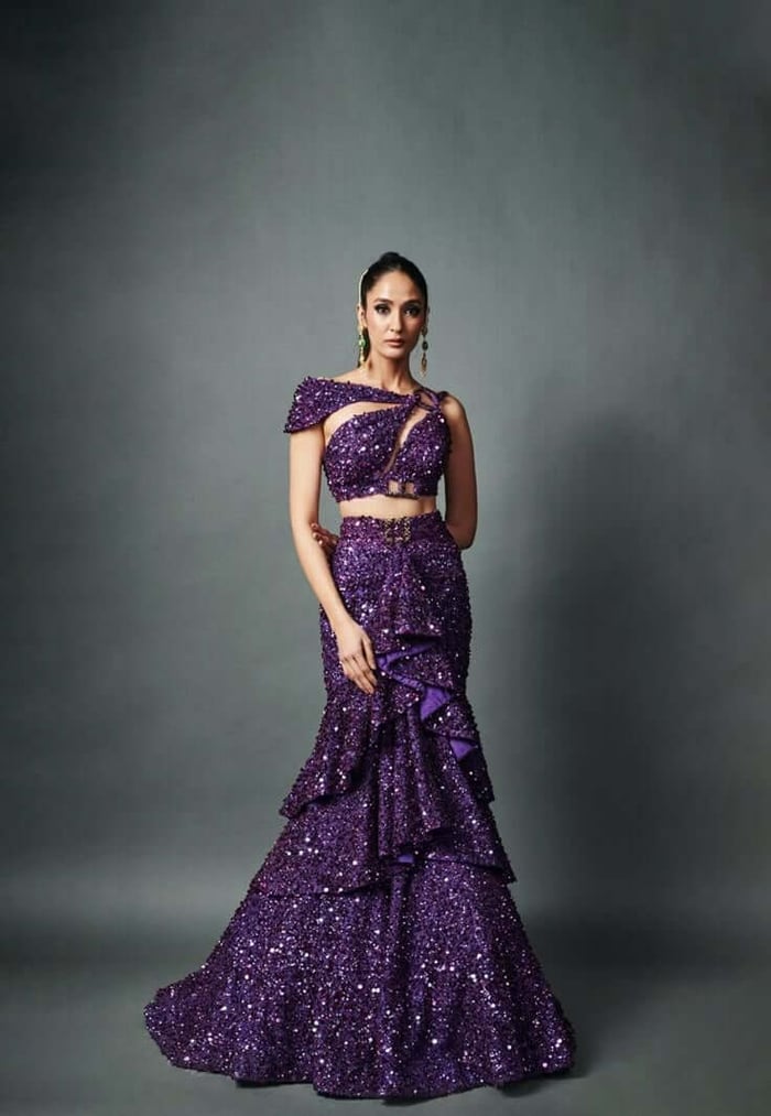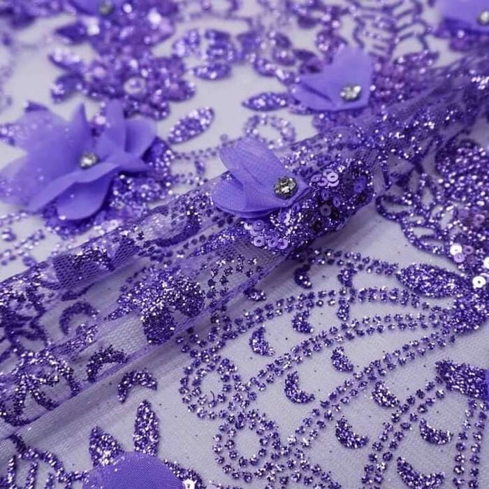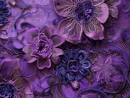 Embellished Lace สีม่วงถ้าเป็นตลาดระดับบนมากขึ้น สีม่วงบนลูกไม้ที่มี embellishment บางส่วน เช่น งานปัก ลูกปัด หรือประกาย subtle จะช่วยยกระดับเป็น high luxury ได้ดีมาก