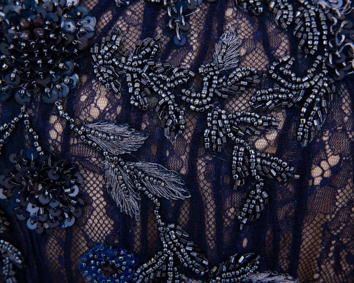 ถ้าแบรนด์ต้องการลุคที่หรูขึ้นไปอีกระดับ การใช้ลูกไม้สีน้ำเงินที่มีประกาย subtle หรือมี embellishment บางส่วนจะช่วยสร้าง evening elegance ได้ดีมาก โดยเฉพาะในตลาด export และ occasion wear