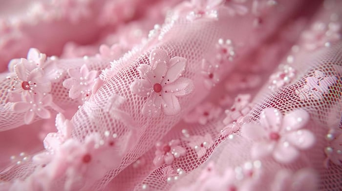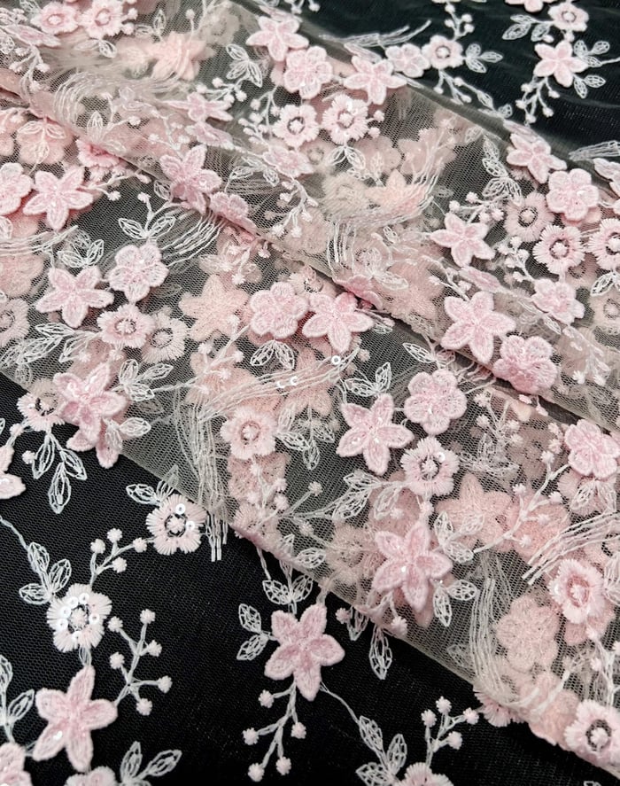 ลูกไม้ทูลเล่และแฟนซีทูลในสีชมพูเหมาะมากกับงานที่ต้องการ movement และความนุ่มนวล เช่น แขนพอง เลเยอร์โปร่ง หรือเดรสที่ต้องการลุคละมุนฝัน ๆ