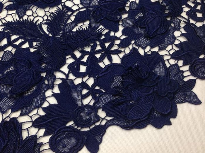 Guipure เป็นหนึ่งในตัวเลือกที่ดีที่สุดสำหรับ navy เพราะมีลายยกสูงและโครงสร้างเด่นชัด ทำให้สีกรมท่าดูมีพลังและมีน้ำหนักมากขึ้น โดยในข้อมูลหมวดสินค้าระบุว่า Guipure เป็นลูกไม้ที่มี raised patterns และให้ความรู้สึก vintage elegance