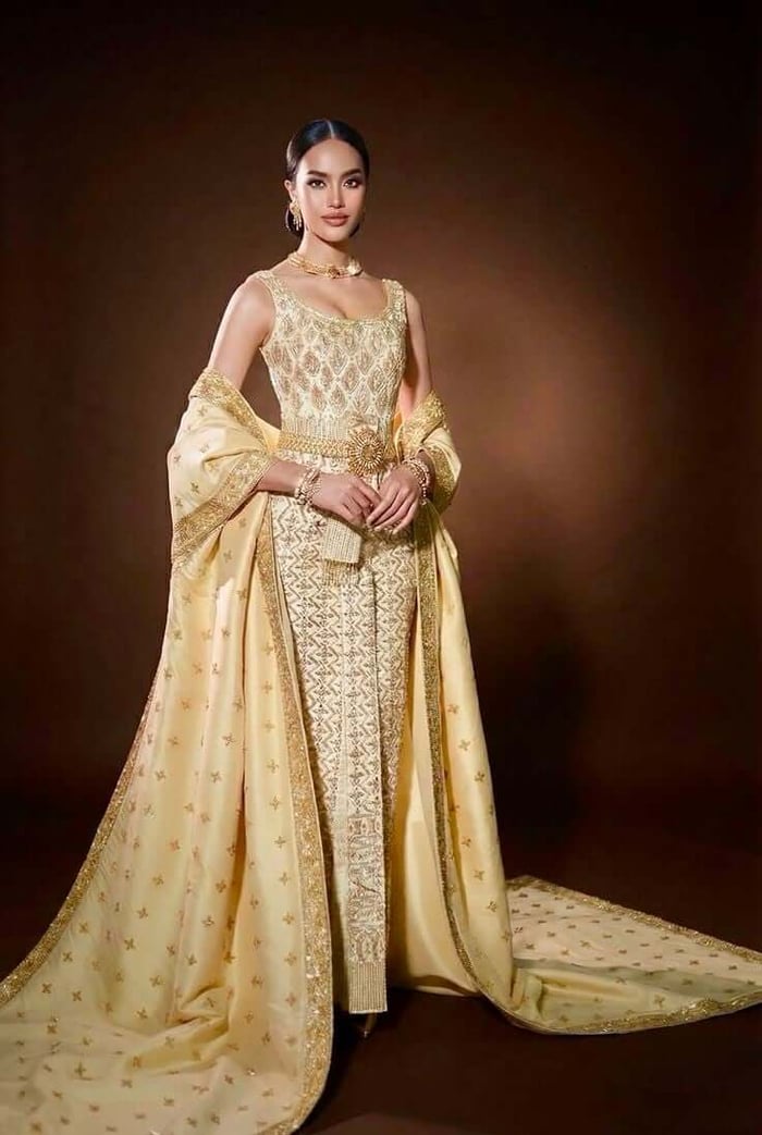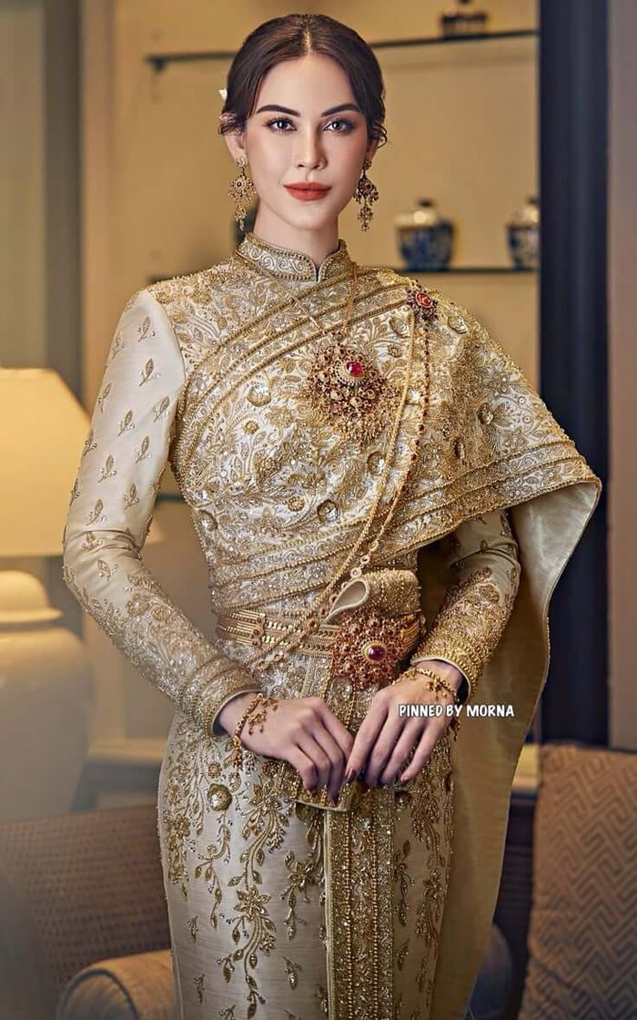 งานแต่งงานไทย: ชุดไทยเจ้าสาวโทนทองอ่อน หรือชุดแม่เจ้าสาวสีแชมเปญประกายทอง