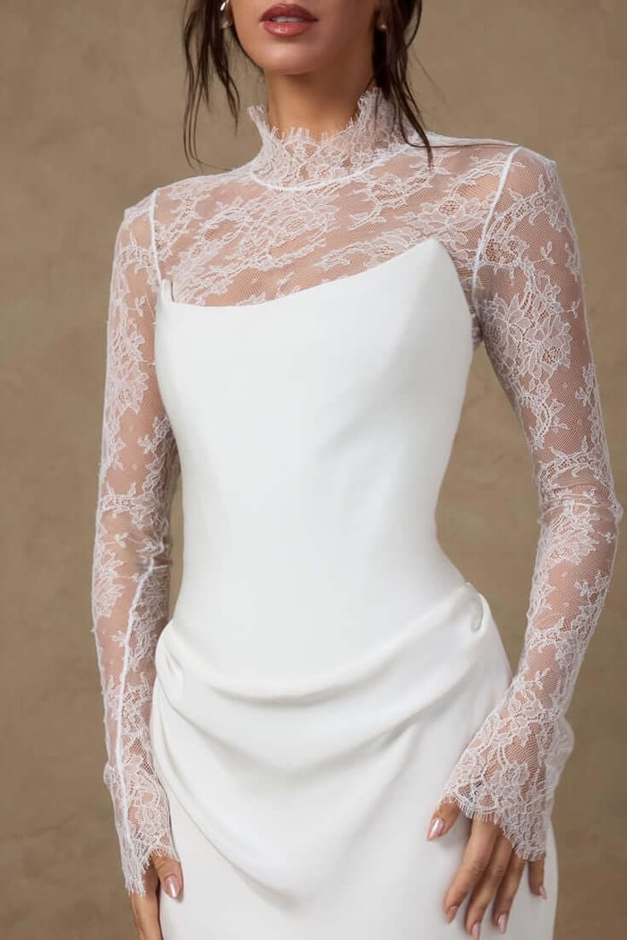 ถ้าต้องการความหรูแบบนุ่มนวล ไม่หนัก ไม่ overt มาก ลูกไม้กลุ่ม French Lace หรือ Chantilly ในโทนแชมเปญจะทำงานได้ดีมาก เพราะให้ทั้งความละเอียดและความโรแมนติก