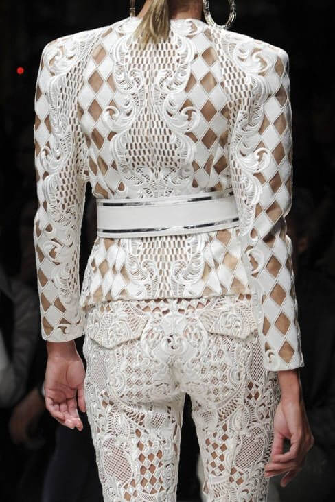 As Gen Z and Millennial designers take over fashion, lace is reimagined with clean lines and modern geometry. Instead of florals and vines, Modern Geometric Lace incorporates minimalistic shapes and architectural motifs, suitable for both men’s and women’s fashion.