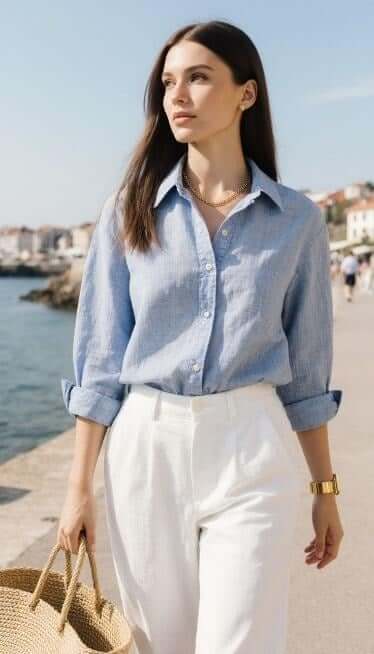 Cotton remains one of the most accessible and versatile fabrics for hot weather. It is soft, familiar, breathable, and easy to wear. Cotton works well for a broad range of garments, from casual basics to polished daytime pieces.